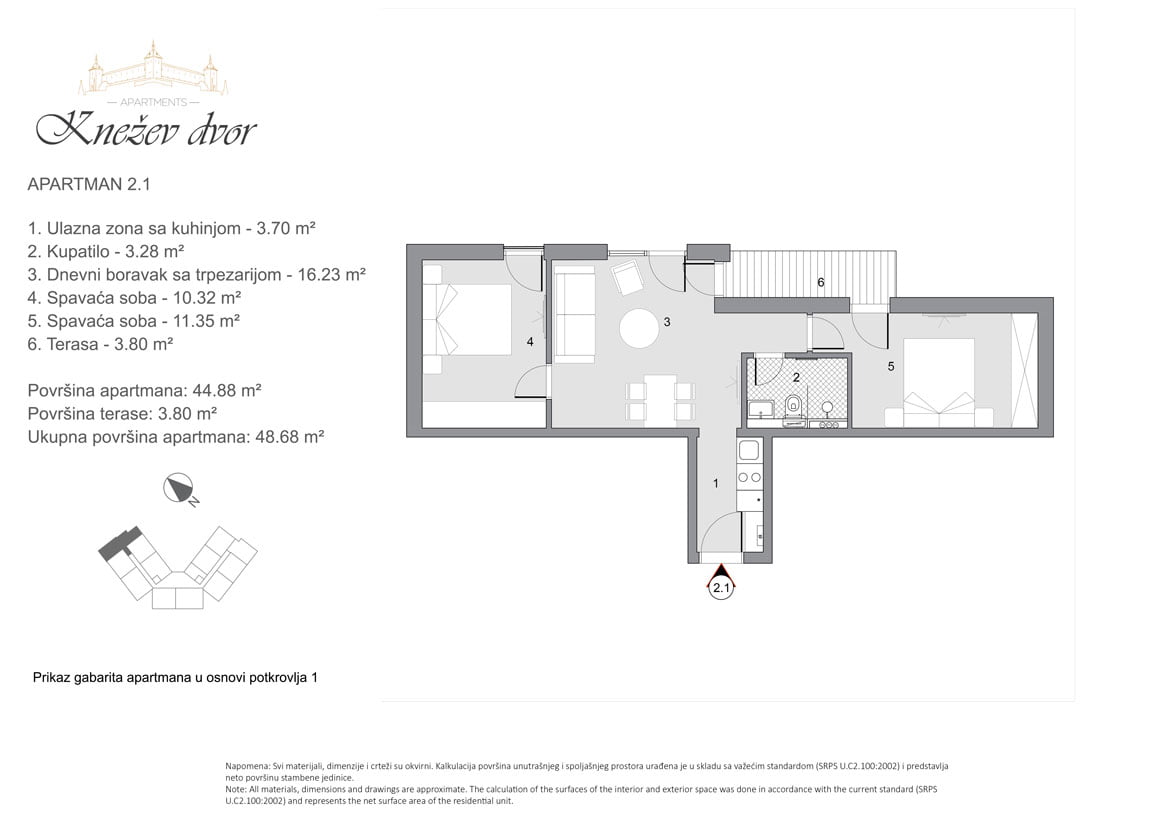 If you want to invest in a secure future with a minimal investment of time and energy, and want to have your own apartment for enjoyment and vacation, then Knežev dvor is the perfect place! You only need to contact us, and our sales advisors will answer all your questions and refer you to our future business concept in more detail.